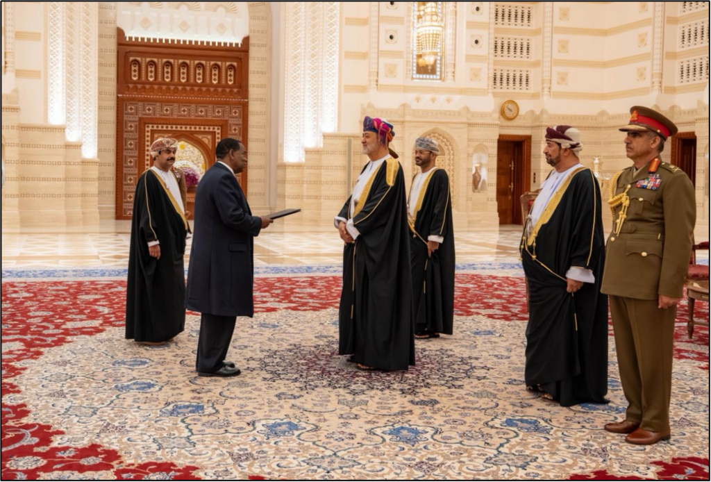 At a ceremony in the Sultan’s palace on Wednesday, February 11, 2026, His Excellency Mohammed Barrie, the Ambassador Extraordinary and Plenipotentiary of Sierra Leone to Saudi Arabia and the non-resident Ambassador accredited to the Sultanate of Oman, formally presented his Letters of Credence to His Majesty Sultan Haitham bin Tariq Al Said.