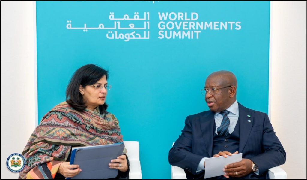 Dr Sania Nishtar, Chief Executive Officer of Gavi, the Vaccine Alliance, praised President Julius Maada Bio for his global leadership and unwavering commitment to immunisation during a bilateral meeting on the sidelines of the World Governments Summit 2026 in Dubai on Tuesday, February 3, 2026. Dr Nishtar thanked President Bio for his role in last year’s replenishment summit and announced that Gavi had raised $10 billion since the Brussels summit to support vaccine programs around the world.
