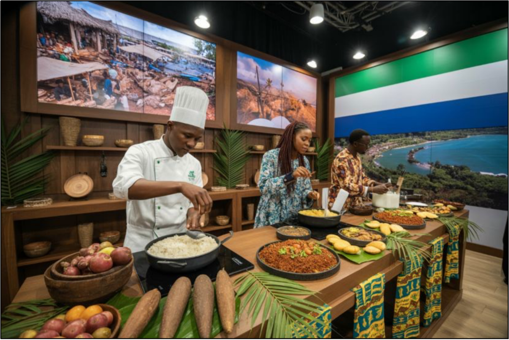 Nearby, as guests waited impatiently to try traditional dishes, the smell of cassava and potato leaves filled the stand. The food tasting highlighted a broader plan: promoting Sierra Leonean food as a source of cultural heritage and a draw for tourists. Culinary tourism, according to organisers, will play a bigger role in drawing in curious foreign tourists and boosting local economies.