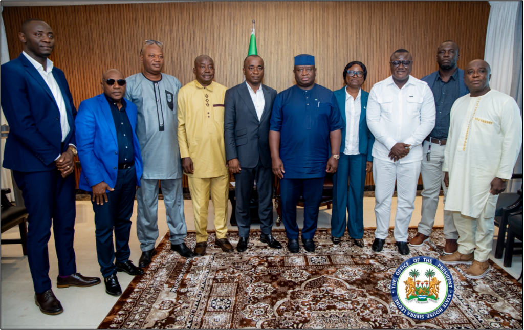 President Dr. Julius Maada Bio welcomed the newly elected executive of the Sierra Leone Football Association (SLFA), led by President Babadi Kamara, to State House. The courtesy visit highlighted the association’s commitment to promoting peace, unity, and transparent administration throughout the country’s football landscape.